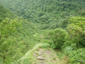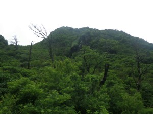 | 普賢岳山頂が見える | 大きな木は焼けているように見える | 一旦降り登り返す |