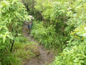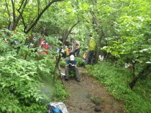 | 山頂(雷雨ですぐに撤退) | 土砂降りの雨の中、紅葉茶屋を目指す | 登山道は川のようになった |