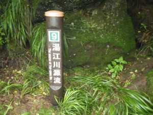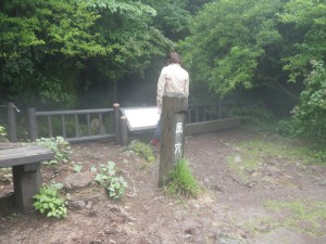 | 北の風穴にはベンチが | 島原湾が見える | 湯江川の源流だそうだ |