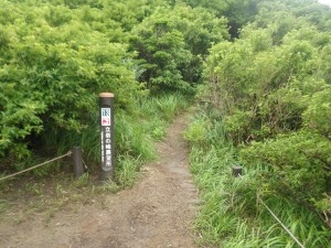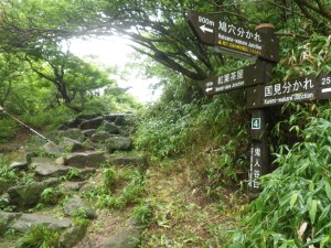 | 鬼人谷口の分岐(ここで一周したことになる) | 国見分かれに向け登り返す | 国見岳(ちょっとだけ青空が) |