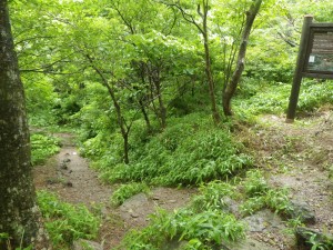 | 鳩穴分かれから急登 | アジサイが美しい | 木の背は低い |