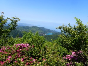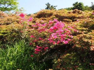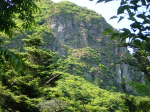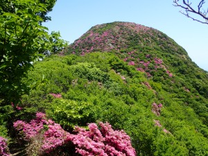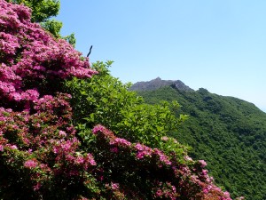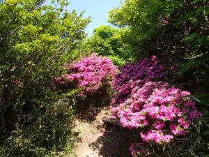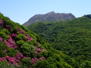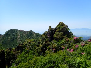 | ツツジがきれいだ | 妙見岳の絶壁に咲くミヤマキリシマ | 鳥居をくぐるとロープウェイ駅(15:00) |
