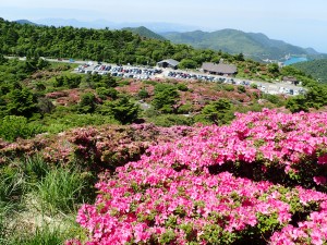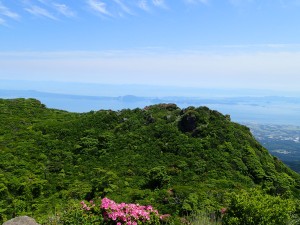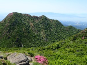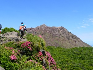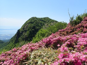 | 普賢岳と平成新山 | 国見岳を見て感動 | 斜面は満開のミヤマキリシマ |