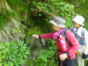 | ミツバツチグリと思われる花がたくさん | 形が大きく変わって見える国見岳 | おっ冷風が・・・・・ |