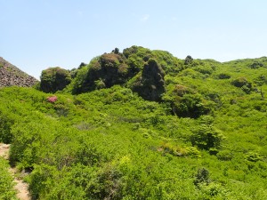 | 普賢岳はこの方向 | 岩は溶岩であろう | 窪地から |