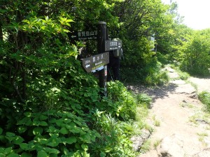 | 南側の展望 | 野岳と駐車場が見える | 妙見岳山頂への標識がある |