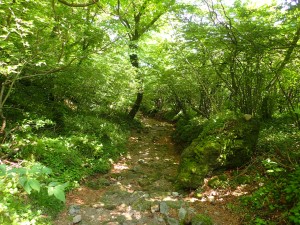 | 石の多い登山道を降る | 紅葉茶屋の分岐点(14:13) | 本当に昔、茶屋があったと言う説もある |