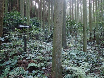 福智町方城支所を目印にそこから広谷へと山麓に車を走らせる。民家が少なくなるとY字路にぶつかるので右に進むと石鎚自然散策路と書かれた標識がある。駐車場もあるが、ずいぶんと荒れている。