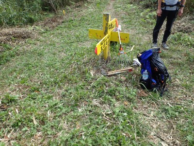 ここから気持ちの良い稜線歩きだ。ルンルン気分で牛斬山を目指す。ただ、ここから下りで帰路は上りだと気づく。『下山の方がきついや・・・・・』。牛斬山へ近づくと若い(私より)人たちが、草刈りのため登ってきた。この方たちのおかげで快適な稜線歩きができると思うと感謝だ。牛斬山では霞んだ香春岳を見たりしてのんびりと過ごす。 帰路は往路を戻るが、山犬の峠でランチをして杉林の中に笹の防火帯に沿った登山道があるのを見つけ、下りは樹林帯の中を下った。林道に出ると散策路を歩く気がせず、かなり遠回りだが、林道をのんびりと歩いた。