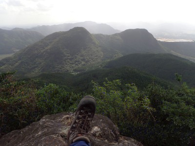 国見岩に座って香春岳を眺める |