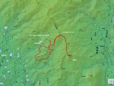 | 石鎚山神社登山口〜散策策路〜山犬の峠〜牛斬山〜山犬の峠〜林道〜石鎚山神社登山口 |