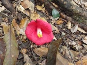 | 登山口(07:50) | 尾根道を歩く | ツバキの花が落ちている |