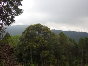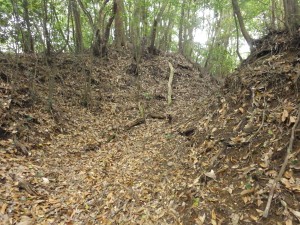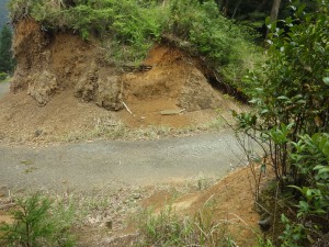 | 登山道はえぐれている | 工事中の道に出る | 伐採されている |