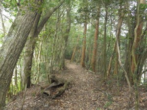 | 再び登山道へ | きれいな尾根道である | 旧街道の牛ノ峠方面 |