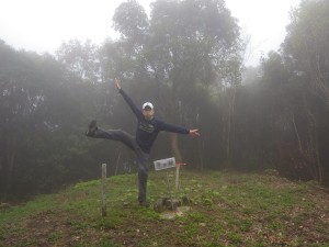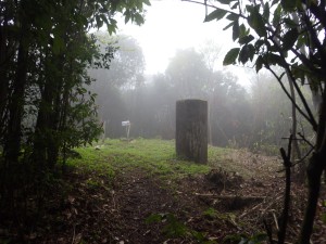 | 低木の間を抜ける | 山頂には三角点と大きな標柱がある(8:31) | 大きな標柱は何と天測点だった |