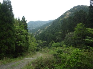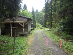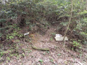 | サツマイナモリ | コンクリートの道になる | このカーブの左が登山口 |