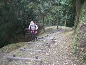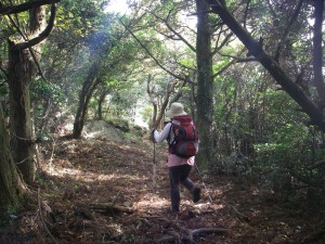 | ツワブキ | この先が展望台と山頂との分岐鞍部 | 階段状の道を |
