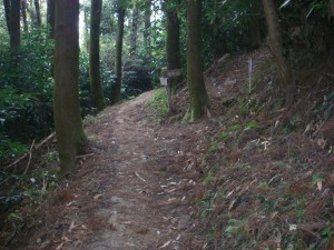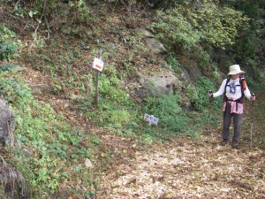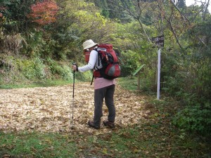| 林道に出た | 木のチップが敷かれていた | こんな標識がある |