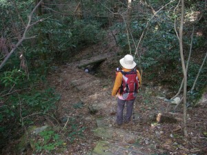 | 前ページからの続き 奥ノ院ではお守りやお土産も販売していて義父母にお守り付きのキーホルダーを購入し、お土産にしました。奥ノ院の入口に気になる鉄梯子があったので登ることに。岩壁に石仏が祭られていてお参りをして一周します。休憩をしたら若杉山頂上へと進みます。奥ノ院からステンレスの手摺のある階段を駆け上がると若杉聖観音があってその左横を抜けると頭上に大きな電波塔が現れ、その麓に山頂標識があります。展望は全くありません。昼食はここから東へ少し下ったところの展望岩「若杉鼻」でとることにします。うきうき気分で若杉鼻で家内に写真を撮ってもらうのですが、ここでアクシデントに会います。何と余所見をしてふと岩を踏み外し足首をガクッと思い切りひねってしまい捻挫をしてしまいました。しばらく動けない状態で痛みをこらえ、アイシングスプレーで冷やしてそのまま昼食をとり、家内のWストックを借りて下山することにしました。帰路は木のチップを敷き詰めた林道(痛い足には助かった)まで戻り、林道をしばらく下ります。5分程度でベンチがある大和の森への取り付き地点です。道は2つに分かれていますが、大和大杉の方へ下ります。丸太の階段が続き木の橋を渡り、沢を横断し、七又杉0.1kmの標識を見て下ると左に綾杉、右に大和の大杉と標識があるのでまずは、大和の大杉を見に行きます(3分程度)。大和の大杉は必見です。なかなかの迫力でした。大杉に感動したら七又杉まで戻り、そこから遊歩道を下ります。ジャレ杉との分岐を過ぎると白い鳥居が見えてきて傍に大きな杉が大切に囲われています。それが綾杉です。神功皇后の関わる杉と言う事で説明板があるので一読すると面白いと思います。ここから少し下ると今朝駐車した大和の森巨木探索路入口です。 <コースタイム> 大和の森巨木探索路入口駐車場−(10分)−岳城山取り付き点−(30分)−岳城山−(5分)−展望台-(20分)-若杉山分岐−(50分)−林道−(15分)−奥ノ院−(7分)−若杉山頂上−(6分)−若杉鼻−(15分)−林道−(10分)−大和の森探索路取り付き点−(20分)−大和の大杉−(15分)−綾杉−(8分)−大和の森探索路入口 ※休憩時間は含まれていません。全行程で約5時間でした。 <感想> 若杉山は篠栗四国霊場八十八箇所の半数以上を山中にちりばめた霊峰とのこと。お遍路さんの多い山と聞いていたが、今回はウォークラリーのイベントのせいか、全く見かけなかった。もっとも今日のコースは、北西尾根と巨木探索を楽しむコースでおそらく若杉山の違った面を楽しめるコースだと思う。山の名は若杉だが、現在はりっぱな杉が立ち込める趣のある山である。 不覚にも捻挫してしまったことが、逆に想い出の登山となった。 |