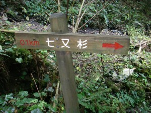 | 小学生の絵、以外にわかりやすい | 木の橋 | 七又杉まで100m |