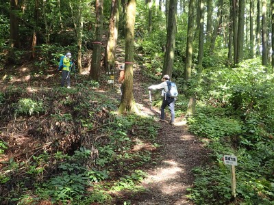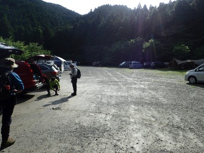 コロナ対策で蜜を避けるため車輌は2台。窓を少し開け、全員マスク着用。ちょうど3月の臨時山行の時と同じだ。高速をノンストップで走り、福岡I.Cより一般道を経て大和の森遊歩道入口に着く。ところが駐車場となる空き地は鎖がかけられて停めることはできず、キャンプ場の駐車場に停めようと入口まで来るとそににはゲートがあって有料となっている。その先の駐車スペースも鎖がかけられている。結局、予定外の出費だがキャンプ場に停めることにした。
