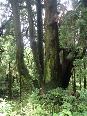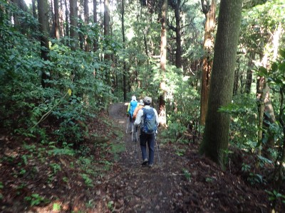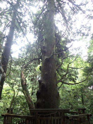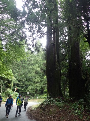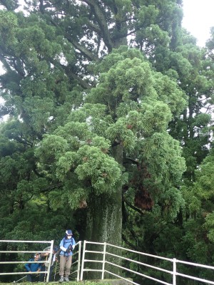 下山は、林道まで戻って遊歩道を歩く。大和の大杉や七又杉、綾杉と杉の巨木奇木を楽しみ無事キャンプ場に到着。