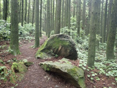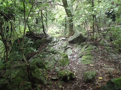 楽園キャンプ場-(10分)-岳城山登山口-(30分)-岳城山-(5分)-展望台-(25分)-若杉分岐-(50分)-林道-(20分)-奥ノ院-(6分)-若杉山頂上-(6分)-若杉ケ鼻-(7分)-若杉山頂上-(20分)-林道-(5分)-遊歩道への分岐-(14分)-大和の大杉-(25分)-遊歩道入口-(7分)-楽園キャンプ場※休憩含まず。全行程で5時間でした。距離9.51km 標高差349m |