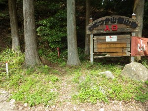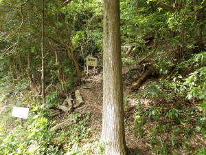 | 登山口が見える | 案内板の左脇から登山道へ(10:30) | 案内板が見える |