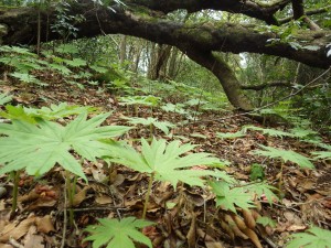 | 他の登山者に追いつく | モミジガサなのかヤブレガサなのか・・・ | コショウノキだと思う |
