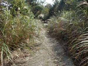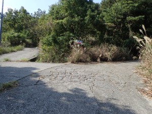 | 公園のような広場に出る | 登山口の標識の近くの路肩に駐車(11:50) | 狭いコンクリートの道 |