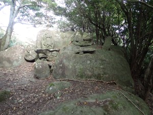 | 不動山が見える | 山頂にて | 南側には不動明王などが祀られている |