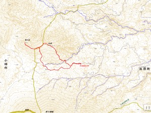 | 矢岳登山口〜分岐〜渡渉点〜山頂〜南面分岐〜竜王山〜南面分岐〜T字路〜分岐〜矢岳登山口 | ||