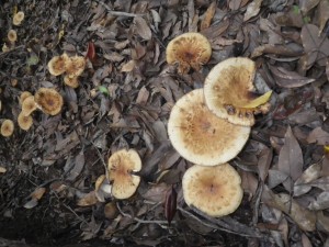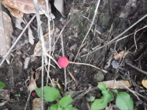 | キノコがたくさん | 歩きやすいがやっぱり登りはきつい | 根が露出している |