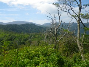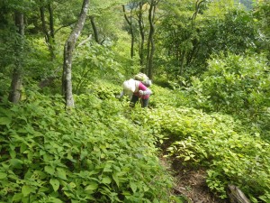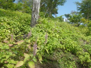 | 高千穂峰 | 樹林帯を完全に抜ける | 足元はミカエリソウの群落 |