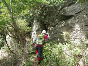 | 南面分岐(12:43) | スズタケが多い | 岩壁の横を進む |