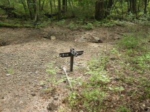 | 自然林の中を軽快に進む | 間違えやすい場所には道標が | 高千穂河原との分岐(10:53) |
