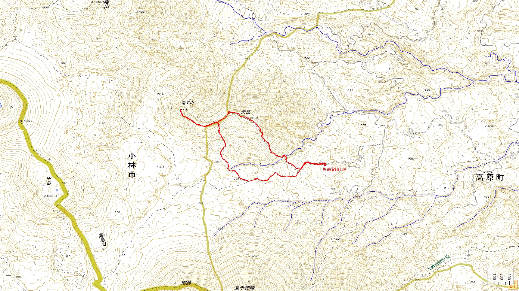 矢岳登山コース(GPSによる歩行軌跡)