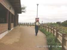 2003/10/13 天気 曇り 今日は英彦山で「ホルモン鍋」の予定でしたが、天候が思わしくないので急遽、近場の山に行くことにしました。 Jさんの勧めで北九州市門司区にある風師山と連なる低山「矢筈山」に公園があるということで昼時に合わせて出発しました。 午前11時ごろ公園駐車場に車をとめ、山頂を目指します。 軽い足取りで車道を進み、途中、武蔵・小次郎が戦った巌流島を見て進むとゲートがあります。(きっと夏場は開いていてキャンプ場への道となるのでしょう。)さらに進むと南側の周防灘の展望が開け、ここから風師山をバックに記念写真を写し、さらに緩やかな坂を歩きます。やがて石垣が現れ、キャンプ場入り口です。真っ直ぐ進み、北側に出ると関門海峡が一望できます。 また、南側に行くと周防灘が一望できます。帰路は往路です。 往復約60分程度の山歩きでした。 |