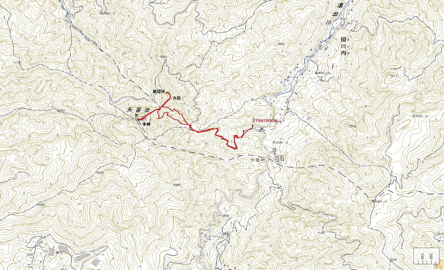 矢筈岳登山コース(GPSによる歩行軌跡)