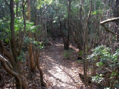 | この岩に立つとカニのハサミ岩が良く見える | 再び植林帯 | 真っ直ぐと谷間を歩く |