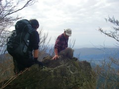 | 山頂にて集合写真 | カニのハサミ岩の一部が見える | 山ノ神方面へ下山 |