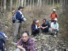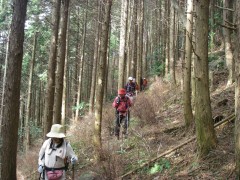 | 下山開始 | 檜の植林帯 | テープがある |