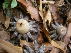 | 杉林の急登を歩く | ご存じツチグリ | 新城山と茶臼山との分岐 |