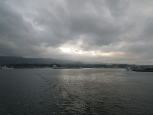 | フェリー「はいびすかす」の案内所 | フェリーに乗り込む | 鹿児島港を離れる(4/18 18:05) |