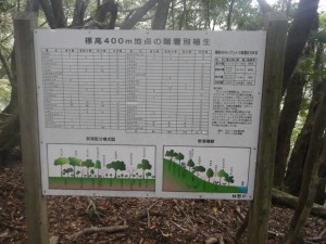 | 巨木が多くなる | 標高400m地点の階層別植生(8:35) | だいぶ登ってきた |