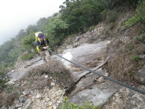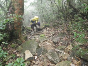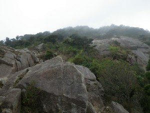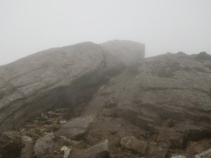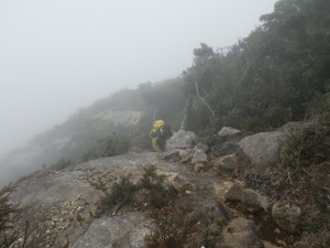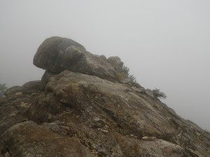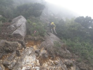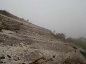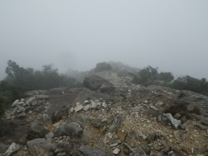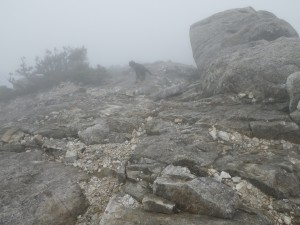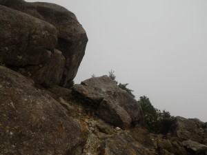 | 降りも慎重に | 視界が悪い | 荒々しい岩々 |