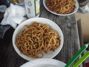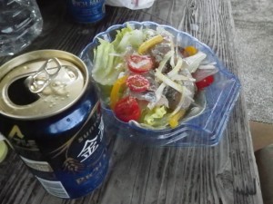 | 迫力ある | 近くのお店で買ったトビウオのカルパッチョ | とヤキソバで夕食 |