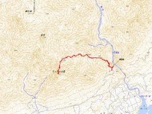 | 宿からモッチョム岳方面を眺める | 今回のコース(クリックで拡大) | 登山口付近からモッチョム岳を見る |