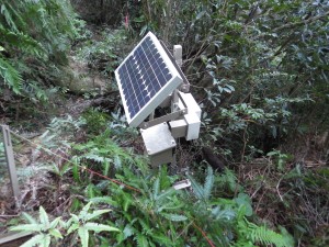| 道標の通り進む | 登山道は木の根が多い | ソーラパネル? |