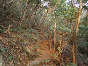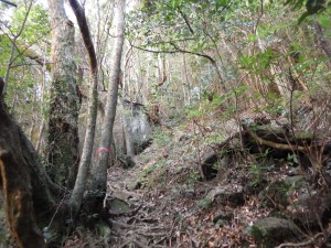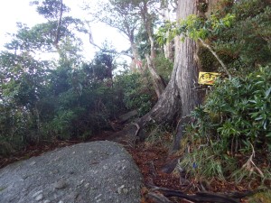 | 尾根を真っ直ぐ行きそうになるが左に降る | 再び尾根歩きだが巨木が多い | |